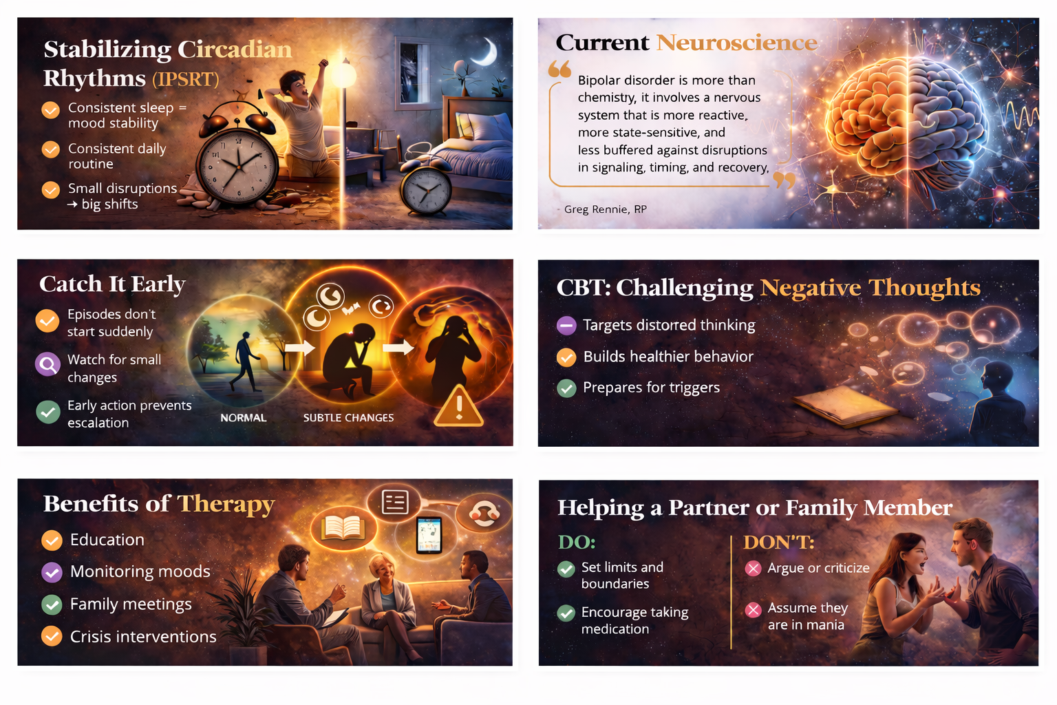 Greg Rennie, RP is the author of “Understanding Bipolar: The Science of Your Mood and Mind”. He is a Canadian Psychotherapist who specializes in treating bipolar disorder and addiction. The two ebooks are based on the current understanding and neuroscience behind the condition and asks the question: “What is Bipolar?”